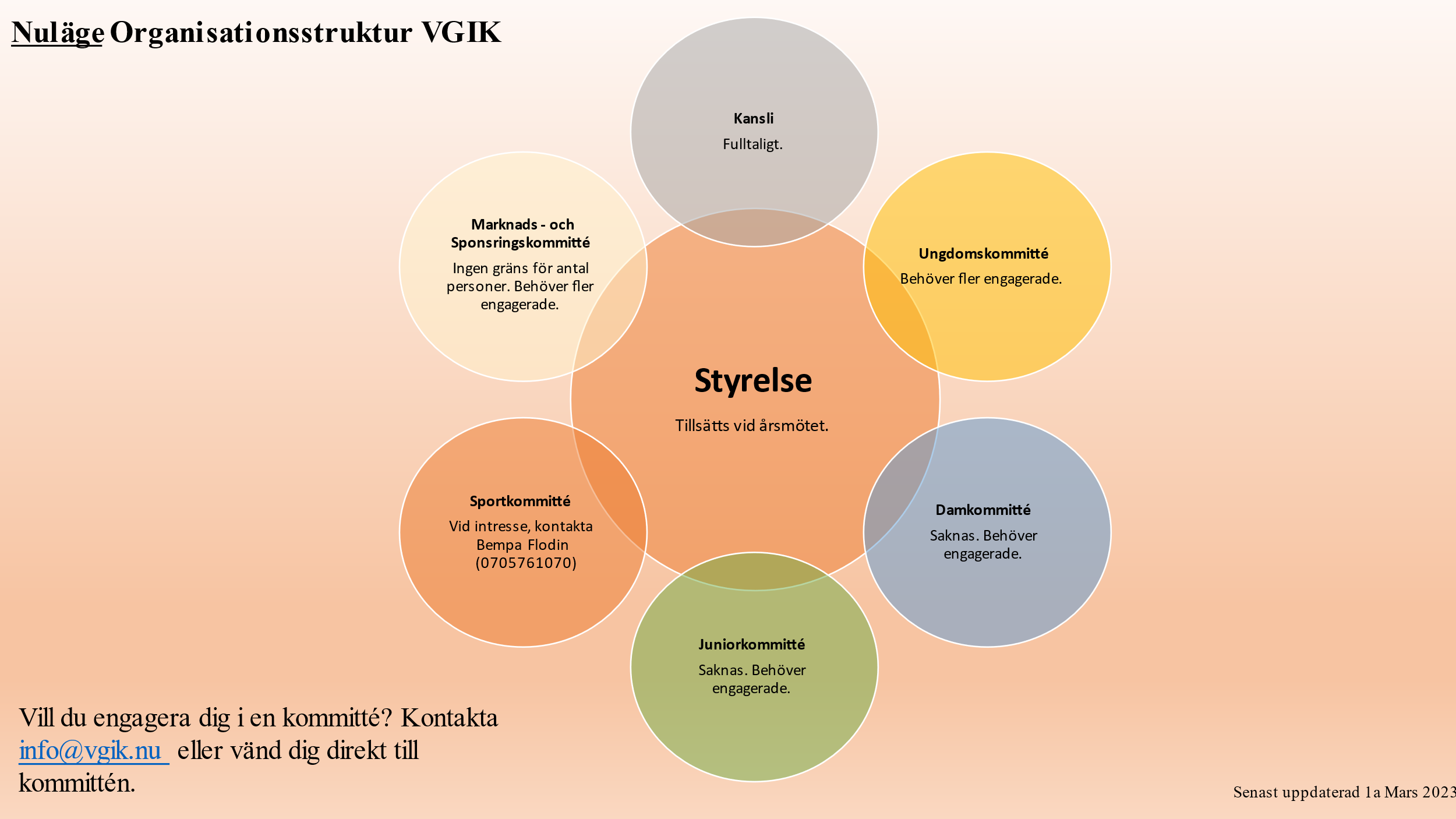 Under säsongen har det genomförts en analys kring klubben gällande styret när det kommer till kommittéer och detta har i sin tur lett till att vi ser ett stort behov av att både utöka antalet kommittéer men även antalet medlemmar i respektive.