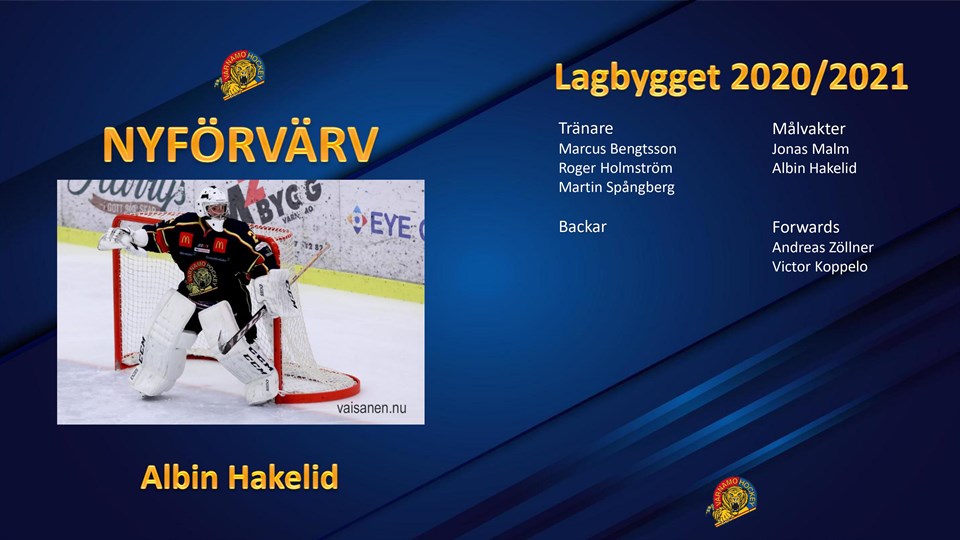 Idag kan Värnamo Hockey presentera det första nyförvärvet till spelartruppen kommande säsong. Det är den nygamla målvakten Albin Hakelid som ansluter till VGIK. Albin har HV71 som moderklubb och spelade två säsonger i Värnamo Hockey mellan 2017 och 2019. Förra säsongen representerade han Gislaveds SK. - Det är med glädje vi kan välkomna Albin tillbaka till VGIK. Albin är 23 år gammal och vi har bra koll på honom eftersom han redan har hunnit spela två säsonger i Värnamo. Förra säsongen tillhörde han GSK där han gjorde en bra säsong. I och med det är vi nu klara på målvaktssidan och vi är väldigt nöjda med Jonas och Albin, säger Marcus Bengtsson, tränare i Värnamo Hockey.