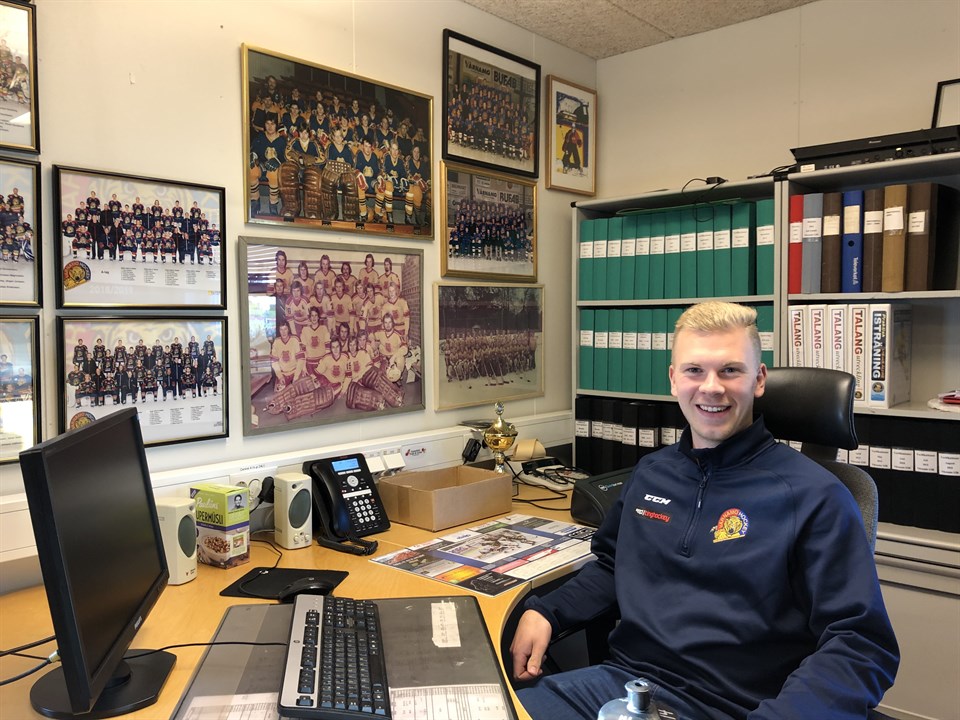 Sedan början av september så har kansliet fått förstärkning av ingen mindre än lagkapten Joakim Rosén. Joakim kommer framöver att jobba halvtid på kansliet, heldagar måndag och onsdag, samt varannan fredag. Anställningen av Joakim är en del i föreningens utvecklingsstrategi där hans uppgift till att börja med är att sätta sig in i föreningen. Han kommer att jobba bredvid legenden Tomas Heiel på kansliet. Redaktionen tog sig ner till kansliet en eftermiddag och tog oss ett snack med Joakim, så ni alla får en bättre bild av vem ni kan träffa på där förutom Heiel och Catrin. Tjena Jocke! Berätta lite om dig själv. Ja, vad ska jag säga? Jag är 24 år, född och uppvuxen i Ljungby där jag fortfarande bor. Jag har en sambo som jag snart är gift med (not. bröllopet är planerat till nästa år). Jag är uppvuxen i en sportintresserad familj, men det var till en början inte helt självklart att det skulle bli hockey. Men vid 7 års ålder tog jag stegen in i ishallen i Ljungby och sedan dess har det bara varit hockey för min del. Du gör ju nu din fjärde säsong som spelar i Värnamo Hockeys A-lag, hur hamnade du här? Jag är ju fostrad i Troja och där spelade jag ända upp till J-20. Fram till och med J-18 gick det ganska bra för mig, men under mina två år i J20 gick det lite tyngre. Under två säsonger missade jag nästan en hel säsong sammanlagt pga skador och sjukdom. När det var dags att lämna J-20 så fick jag inte en plats i Trojas A-trupp. Det gjorde att jag började se mig om efter alternativ och hade då faktiskt lite kontakt med Värnamo. Men olika anledningar gjorde att jag spelade i Alvesta under en säsong. Sedan hörde Värnamos dåvarande sportchef Daniel Holmberg av sig under sommaren 2016 och det blev en flytt till Värnamo. Det har jag inte ångrat. Beskriv dig som person Oj, det var en svår fråga. Människor runt omkring mig skulle nog beskriva mig som lugn. Fast det stämmer faktiskt inte alltid, speciellt när det kommer till matlagning… (skratt). Jag gillar att ha koll på saker och att vara insatt. Jag är nog inte direkt spontan utan föredrar att komma förberedd till saker och ting. Vad tror du att du kan bidra med till Värnamo Hockey utanför isen? Jag har precis avslutat en 3-årig kandidatutbildning på Linnéuniversitetet i Växjö som heter Coaching and Sport Management. Det är en bred utbildning där fokus ligger på sport och idrott. Många av kurserna berör just föreningsutveckling, både organisatoriskt som marknadsmässigt, och där tror jag att jag kan bidra med lite nya tankar och perspektiv. Jag har också byggt upp ett brett kontaktnät inom idrotten under mina år i Växjö som jag tror att jag kan ha nytta av i min roll här i Värnamo Hockey. Jag är supertaggade att få komma igång och applicera min kunskap på en förening och när erbjudandet dök upp från föreningen, så tvekade jag aldrig. Jag har trivts väldigt bra här som hockeyspelare, alltid känt mig välkommen och bra behandlad av alla jag stött på. Så det ska bli spännande att se vart detta leder till! Jag, vi ser verkligen också fram emot att ha dig här på plats! Vi är framme vid den sista frågan, den viktigaste frågan. På vilken plats i hösttabellen kommer Värnamo Hockey att hamna? Haha, ja det var en bra fråga. Vi siktar givetvis på topp fyra, så mycket kan jag säga. Men jag tänker inte ge dig en specifik placering.